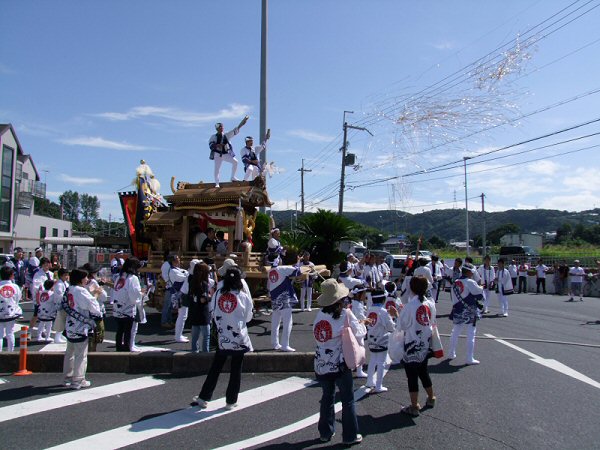 平成24年9月16日、柏原市高井田台が購入しただんじりの御披露目がありました。 このだんじりは、橋本市古佐田の先代で、古佐田の方々もお祝いに来られていました。 入魂式はこの日の早朝に行われたそうで、高井田駅前で式典が行われました。 また、見学者にも飲み物を頂戴し、ありがとうございました。