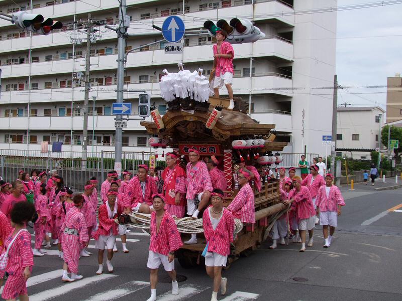 平成27年7月12日、大阪市生野区の生野神社地車講の入魂式が行われました。 東大阪市北蛇草、生野八坂神社宮付、田嶋、岡がお祝いに駆け付け、5町で曳行しました。