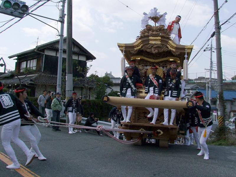 平成28年3月20日、河内長野市三日市北部のだんじりが入魂式を終え、お披露目曳行をする様子です。 河内長野名物のぶんまわしも見せていただきました。