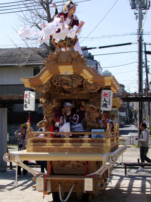 平成28年3月21日、大阪市都島区内代のだんじりの入魂式がありました。 お祝いに駆け付けた中宮のだんじりと、内代の御披露目曳行の様子です。
