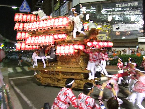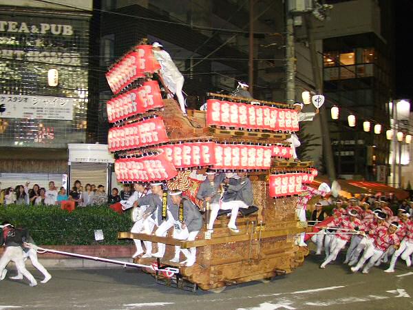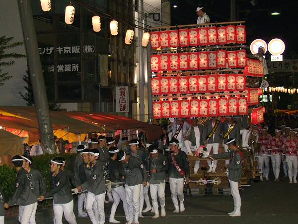 平成22年10月2日の夜に行われた、堺市中区深井地区駅前パレードの様子です。 深井地区は、ほとんどのだんじりが夜も遣り回しをします。 深井駅前は大勢の人で賑わっていました。