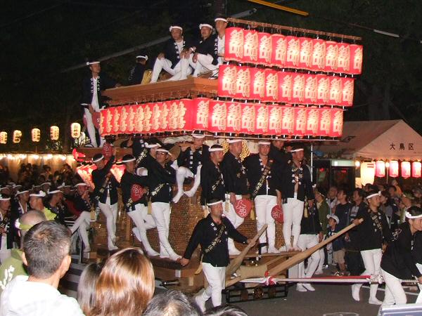 平成23年10月8日(一部の写真は7日)、堺市西区鳳地区の灯入れ曳行です。 鳳大社の前は大勢の見物で賑わっていました。 上だんじりと下だんじりが曳行されていますが、このページで紹介します。