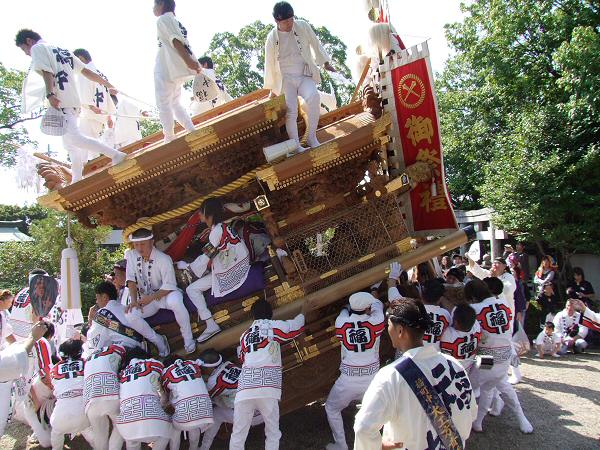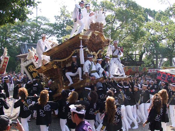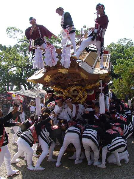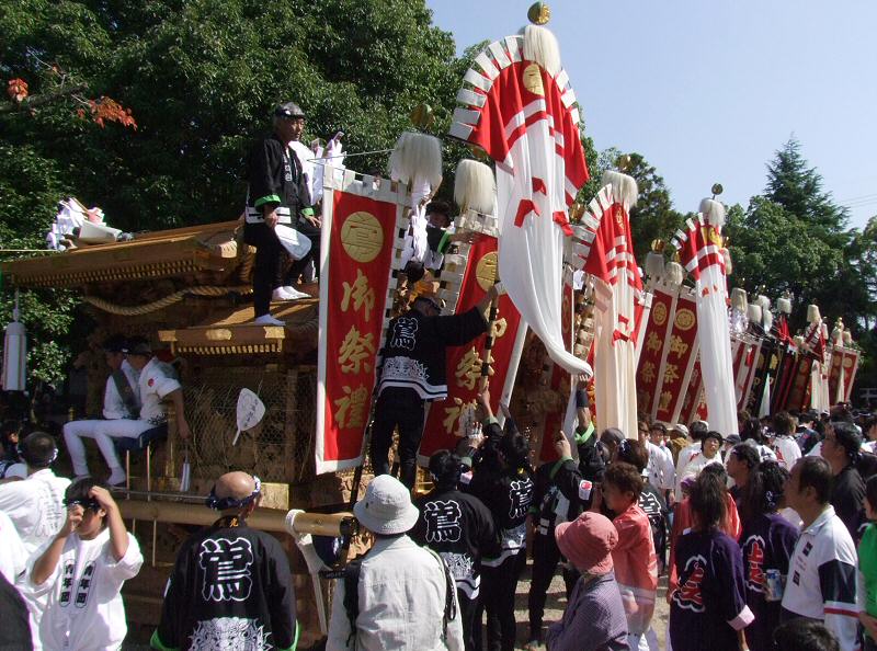 平成23年10月8日、堺市中区陶荒田神社の宮入の様子です。 陶器地区は、泉州では少なくなった上だんじりが10台曳行されていて、素晴らしい宮入を楽しませていただきました。