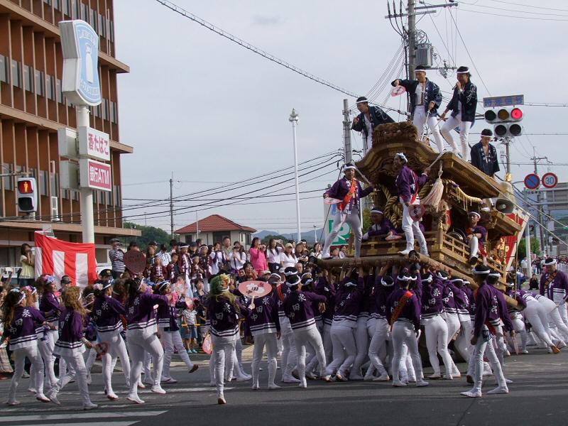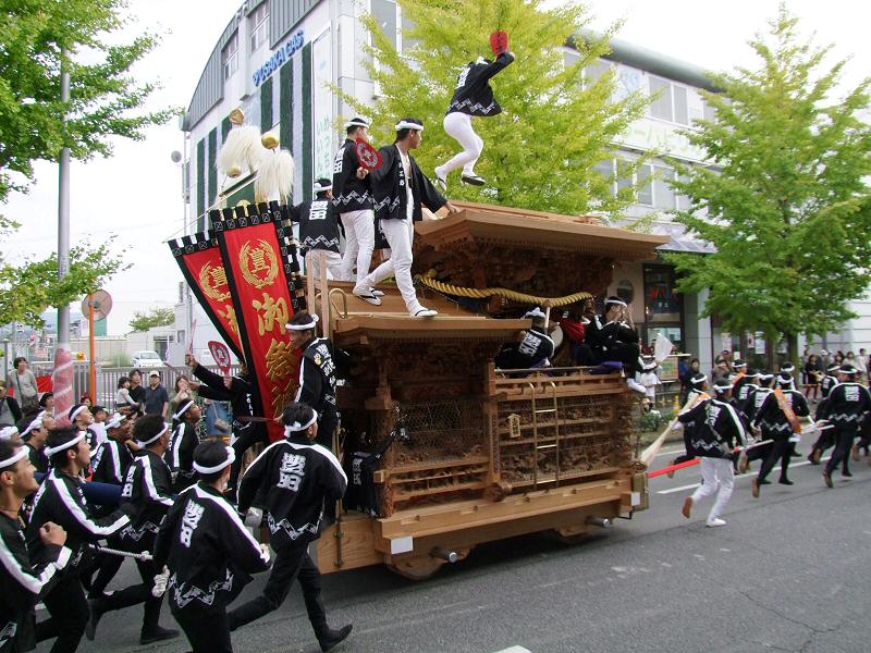 堺市南区上神谷地区です。 上だんじり2台、下だんじり3台が曳行されているので、下だんじりの方が多くなってしまいましたが