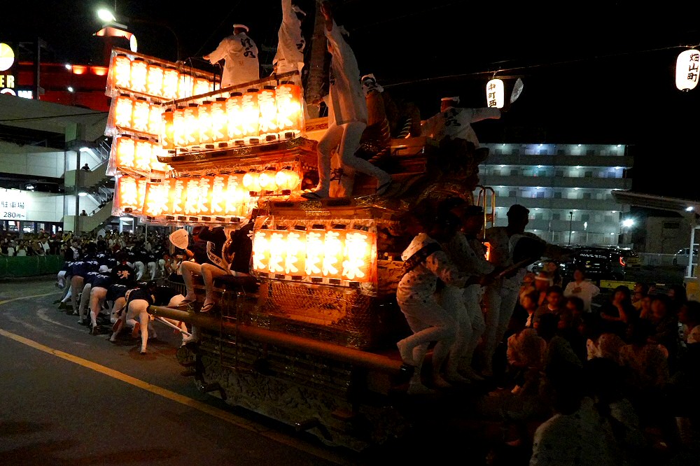 令和6年10月5日、堺市中区深井地区祭礼の灯入れ曳行に行きました。 深井地区では、ほとんどのだんじりが灯入れ曳行でも走ります。