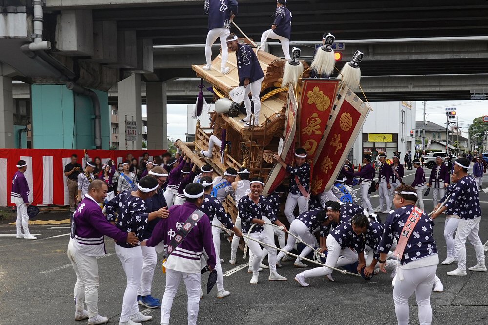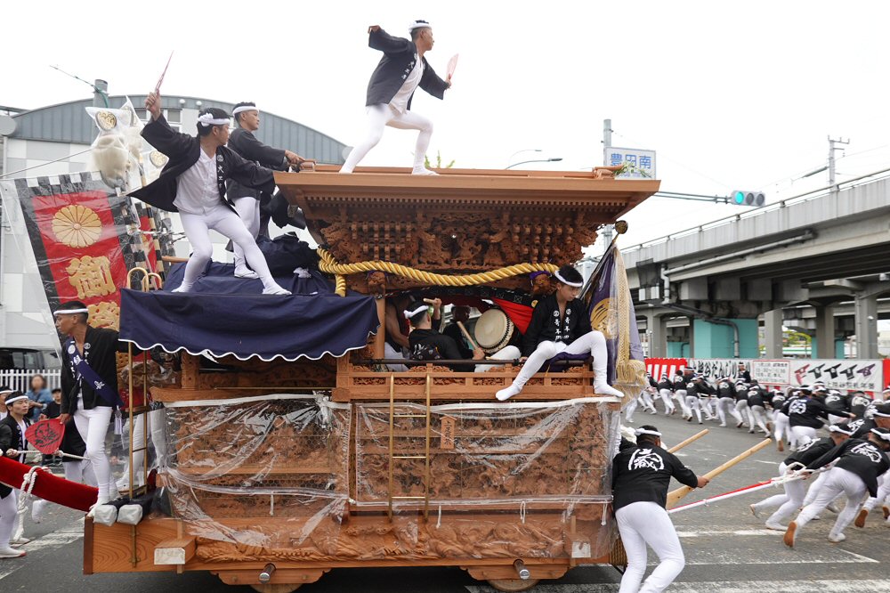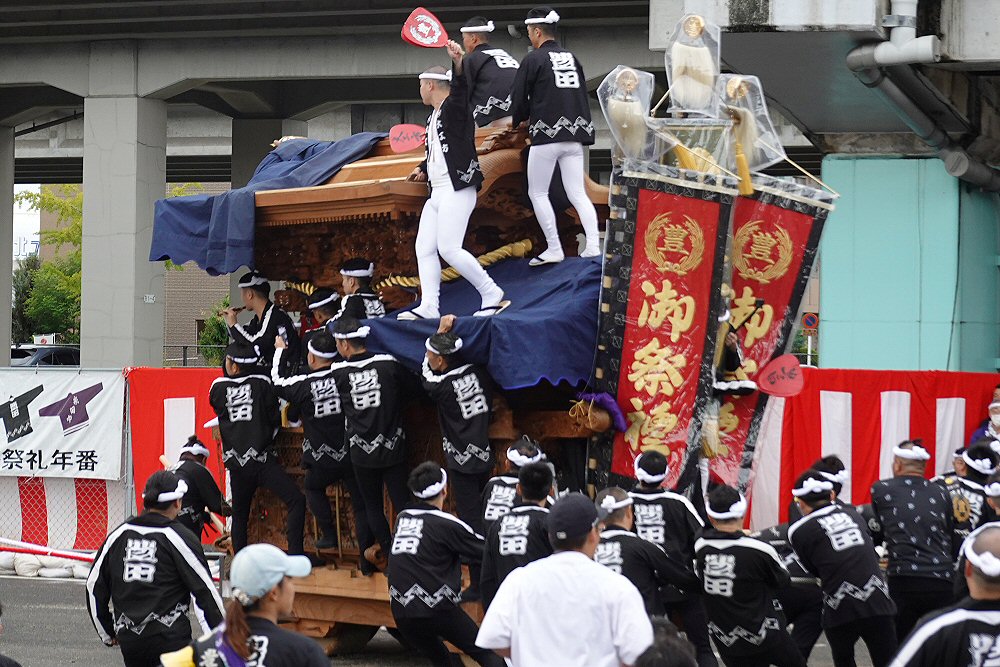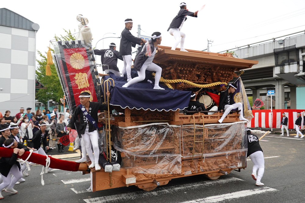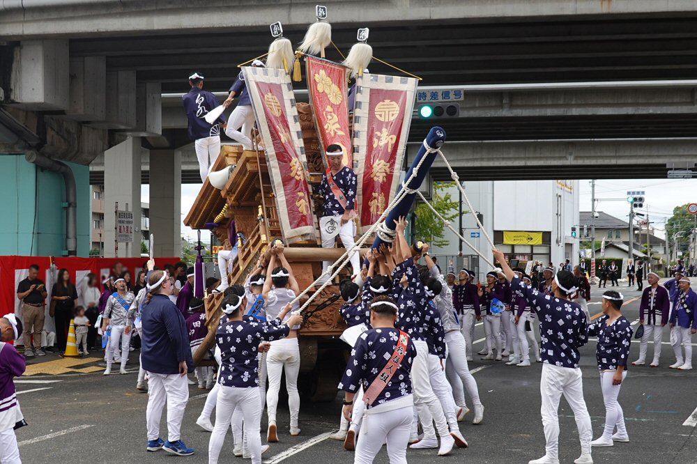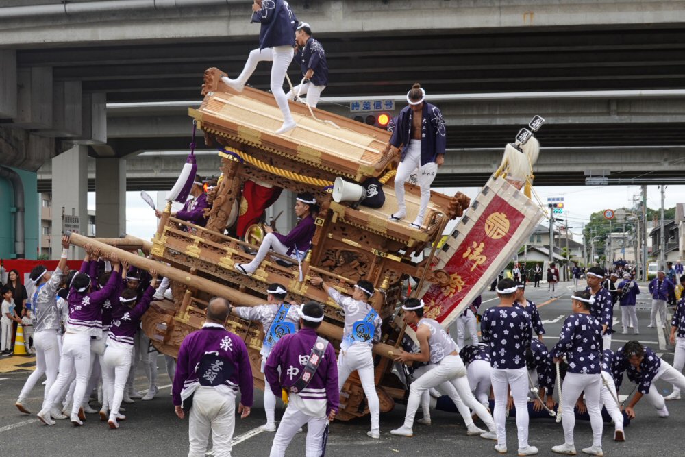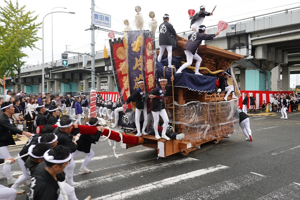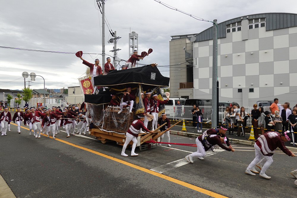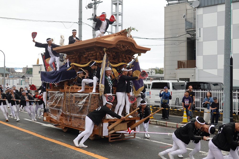 令和7年10月4日、堺市南区上神谷地区祭礼の様子です。 上だんじり2台、下だんじり3台が曳行されています。 見物した時は、降っていた雨があがって良かったです。