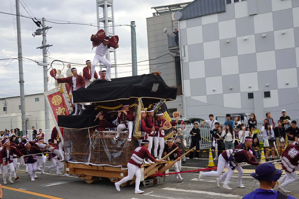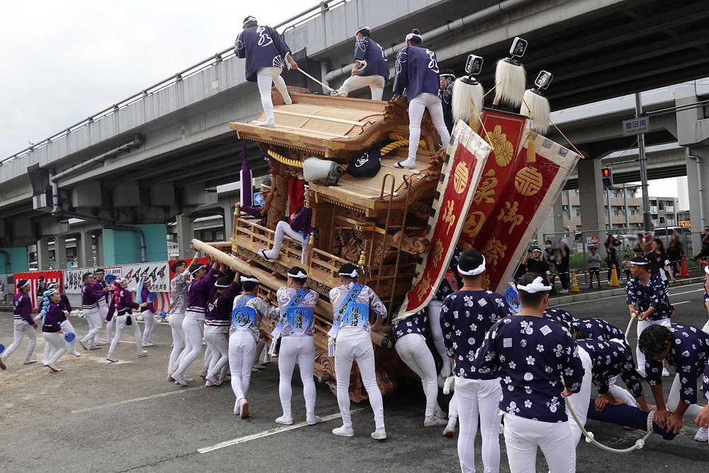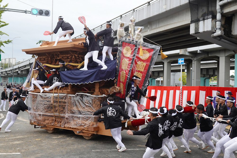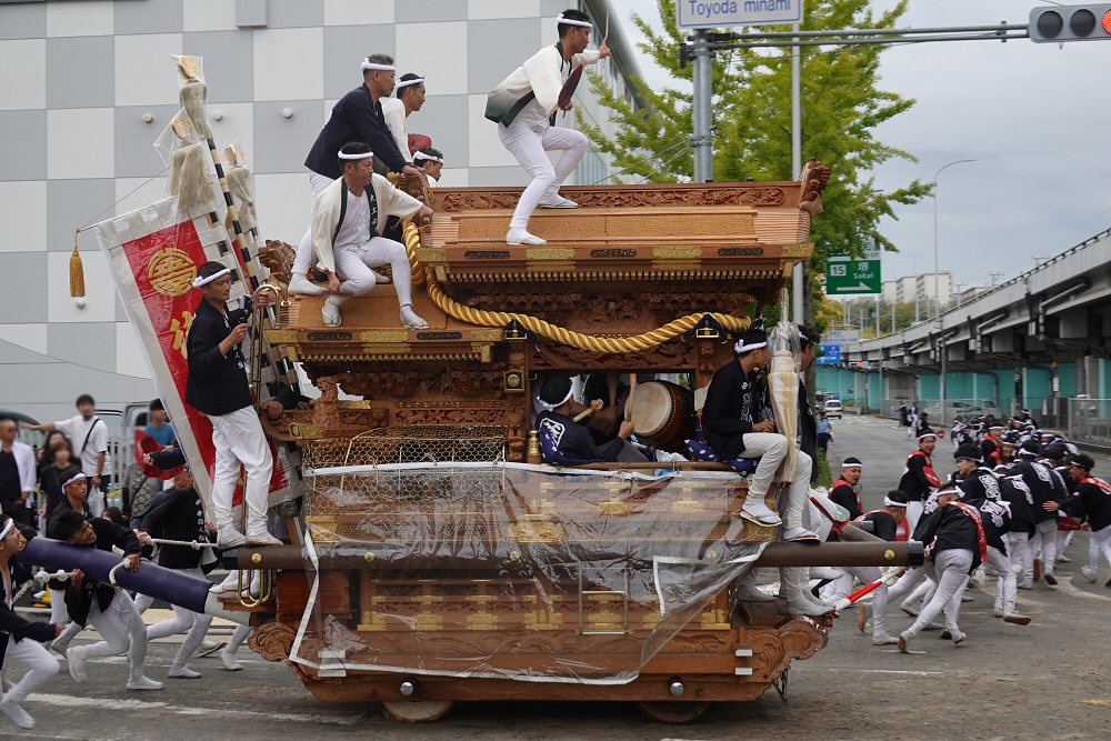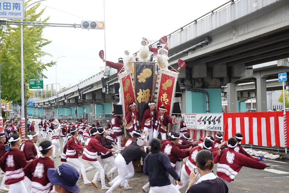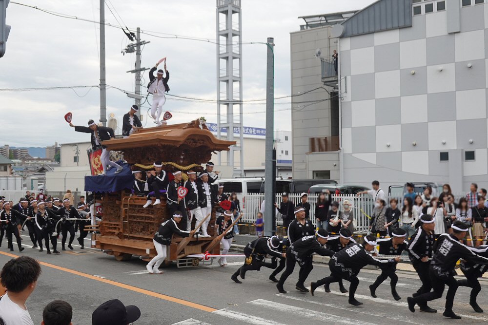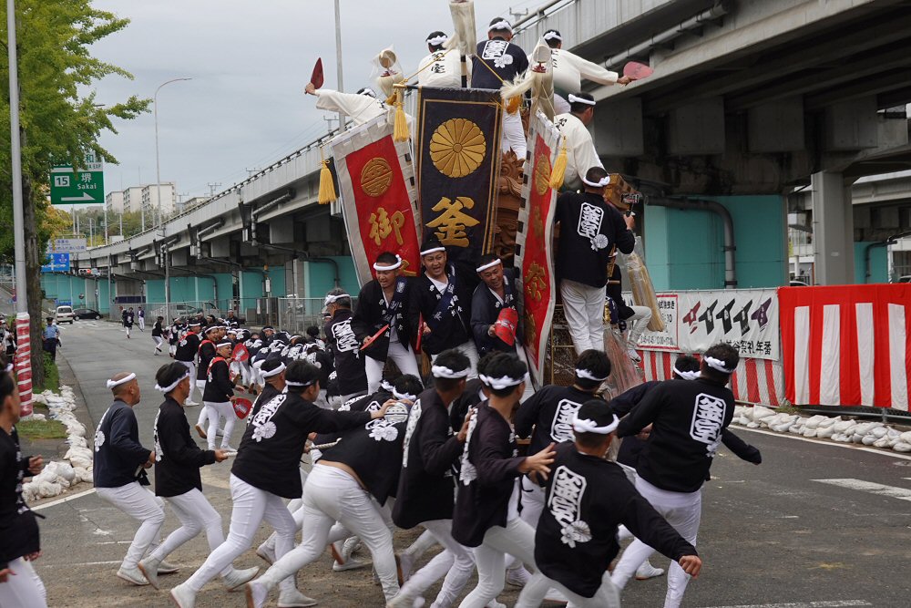 令和7年10月4日、堺市南区上神谷地区祭礼の様子です。 上だんじり2台、下だんじり3台が曳行されています。 見物した時は、降っていた雨があがって良かったです。