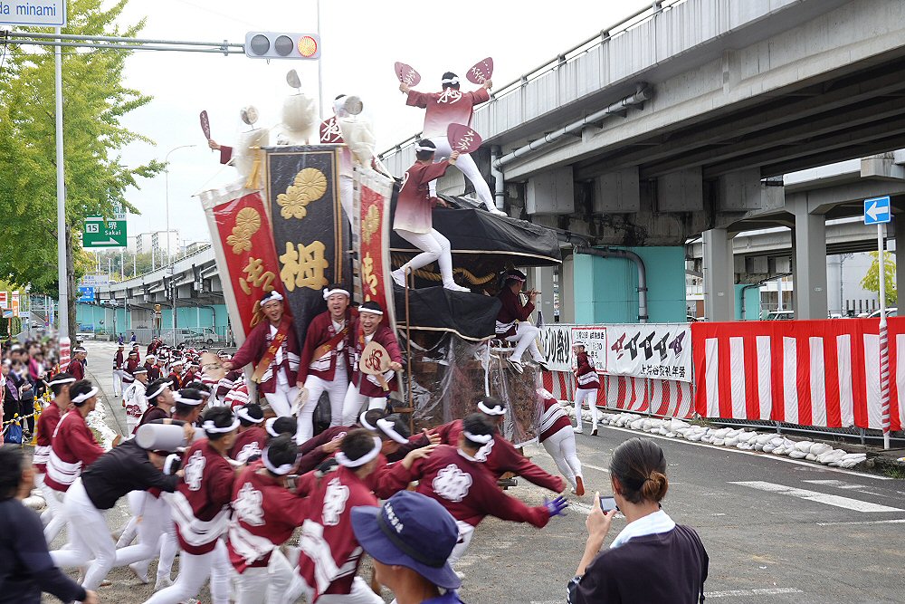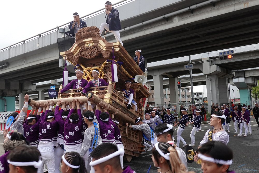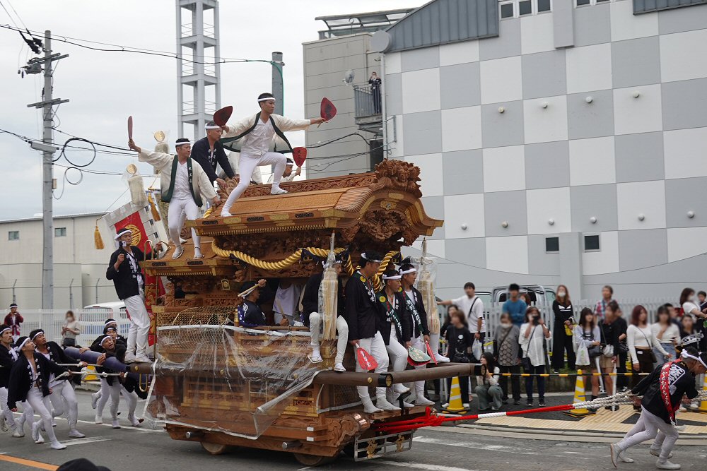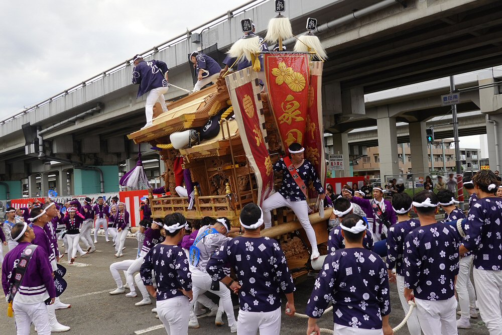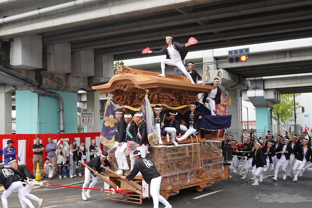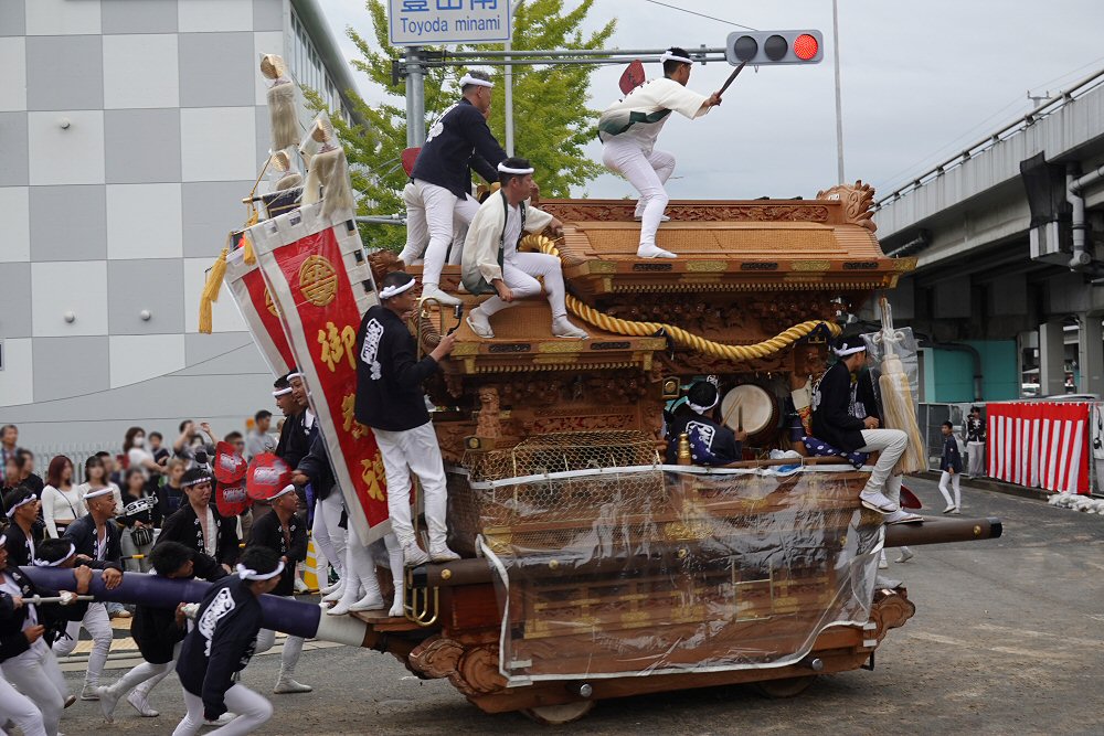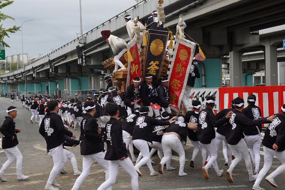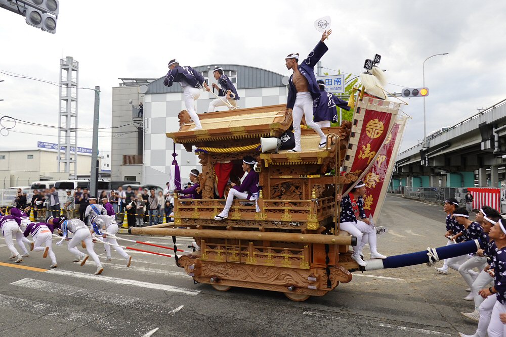 令和7年10月4日、堺市南区上神谷地区祭礼の様子です。 上だんじり2台、下だんじり3台が曳行されています。 見物した時は、降っていた雨があがって良かったです。