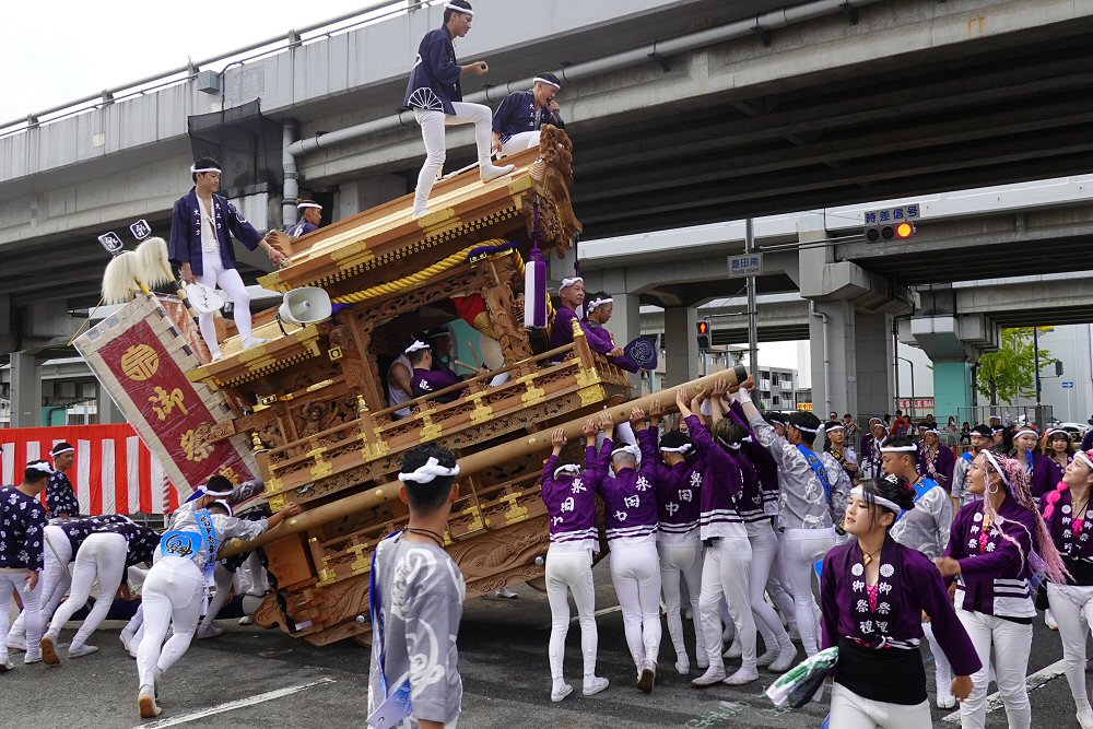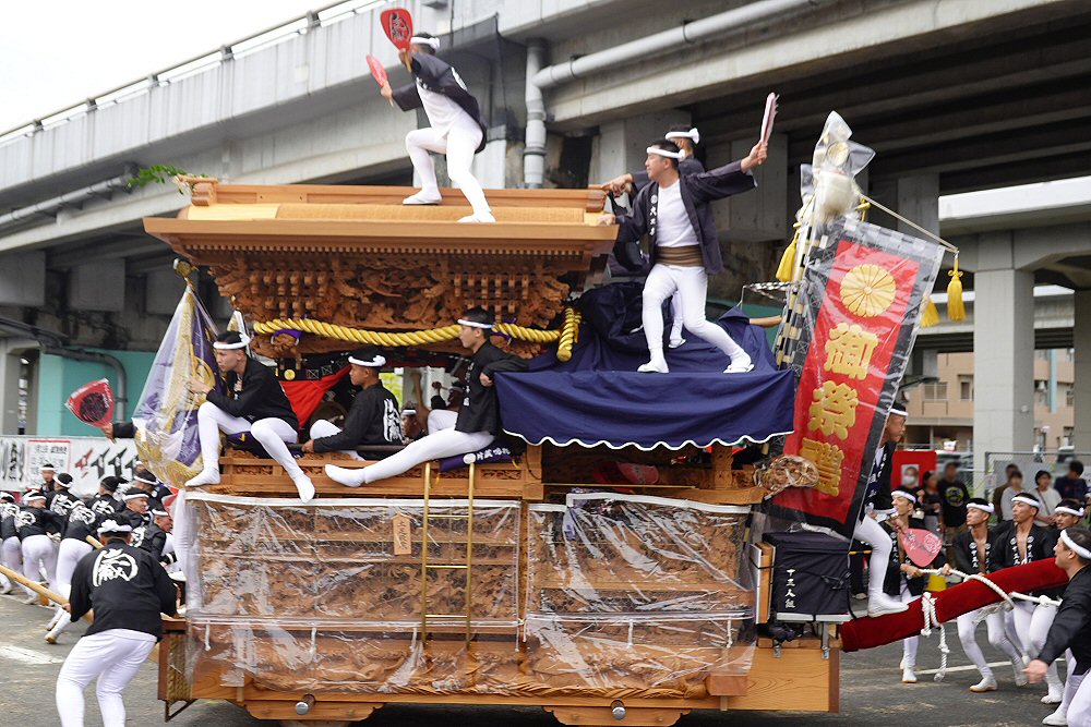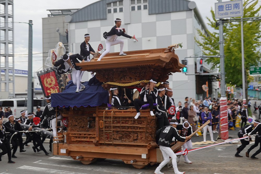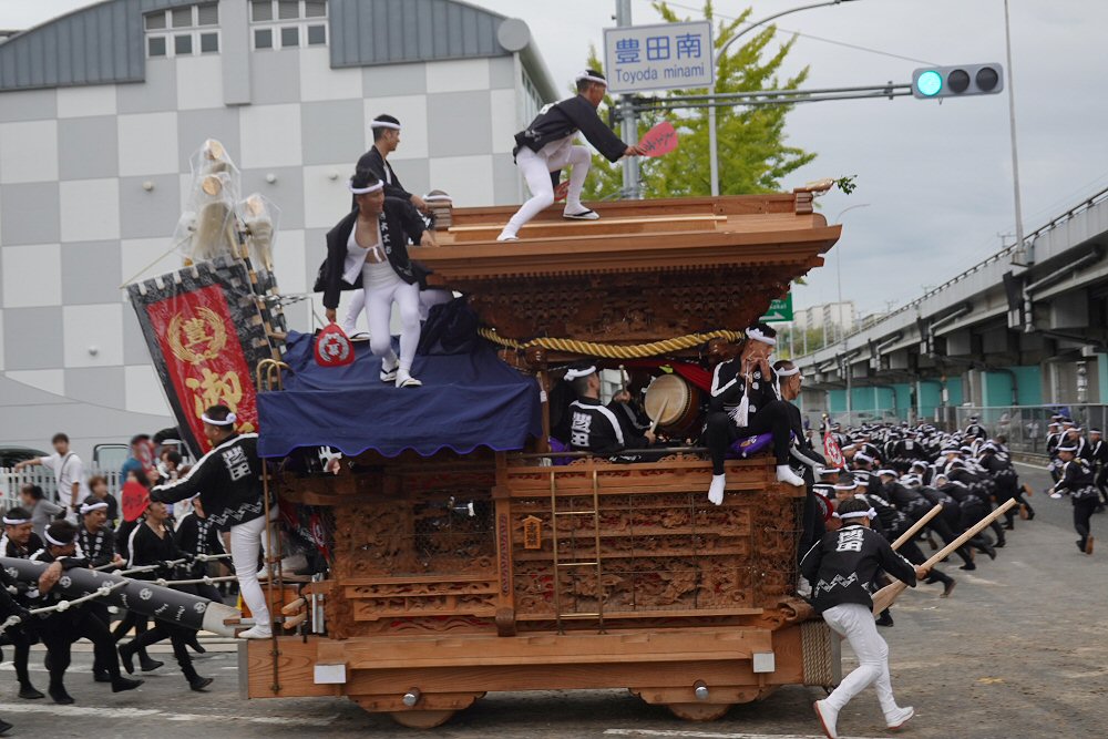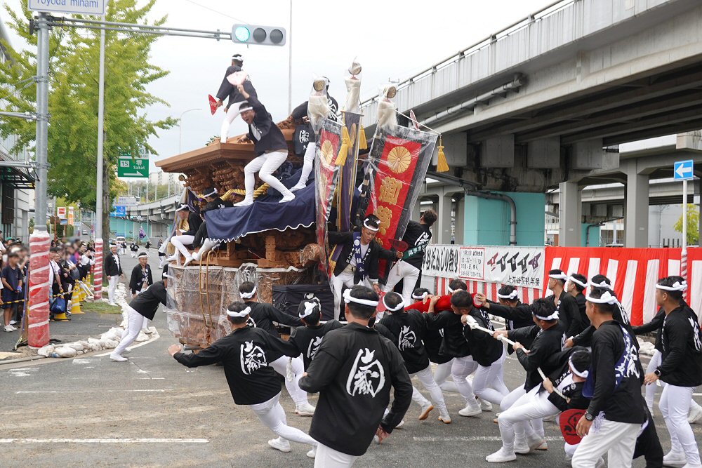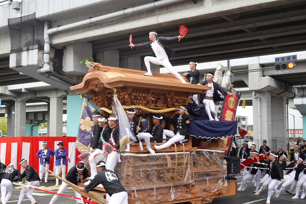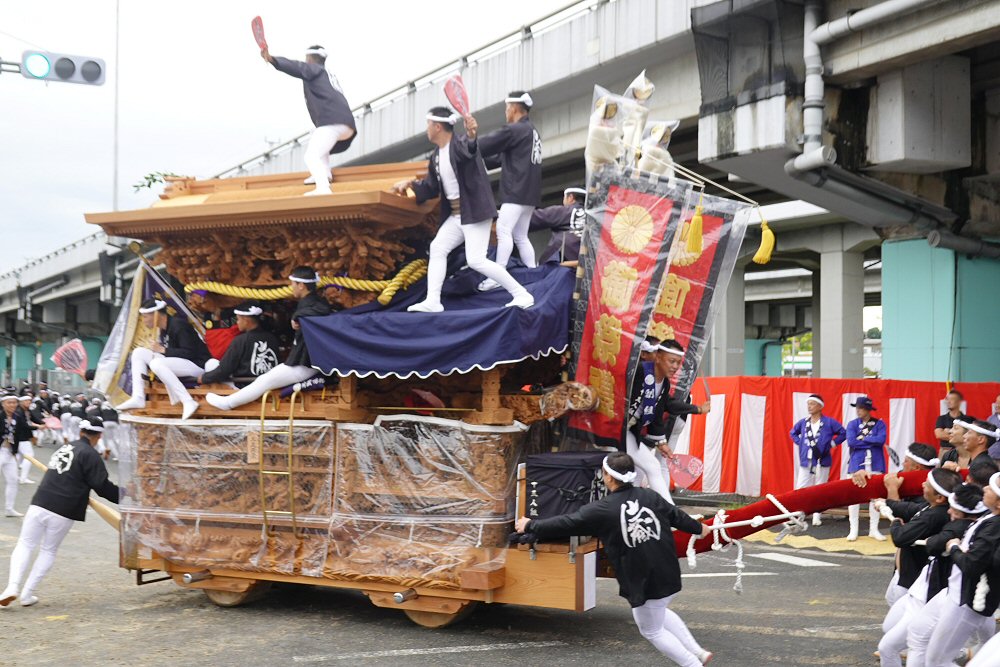 令和7年10月4日、堺市南区上神谷地区祭礼の様子です。 上だんじり2台、下だんじり3台が曳行されています。 見物した時は、降っていた雨があがって良かったです。