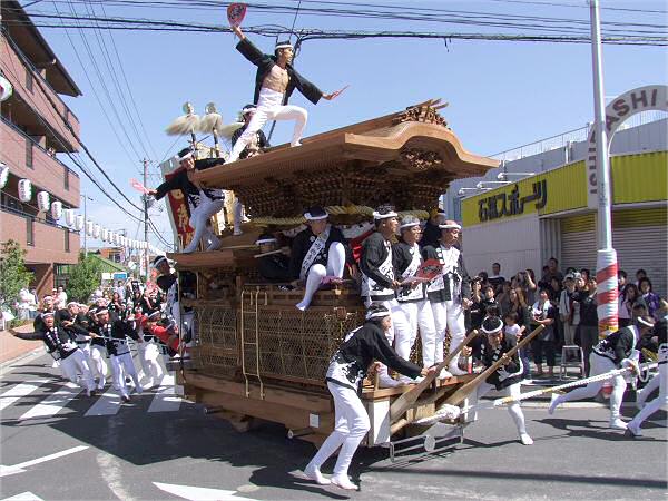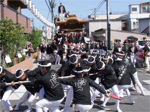 平成21年9月20日、堺市試験曳きで行われた鳳地区と福泉地区の交流を石橋スポーツ前で撮影しました。 ここでは、下だんじりを紹介します。 昨年は途中で大雨になったのですが、今年は好天に恵まれました。