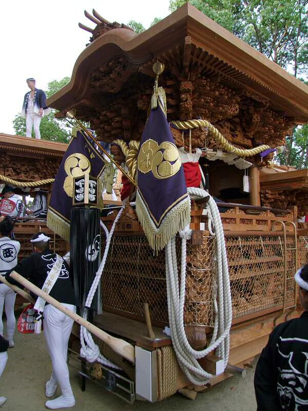 平成26年10月4日、堺市西区踞尾八幡神社の宮入に行きました。 津久野地区の祭礼は、よく見ていますが、宮入は6年ぶりです。 午前7時前に神社に着いた時には、既に下田が宮入し、西組が宮入しているところでした。 津久野地区のだんじりは全て新調ですが、上だんじりは宮山1台になってしまいました。 全町が上だんじりを曳行していた