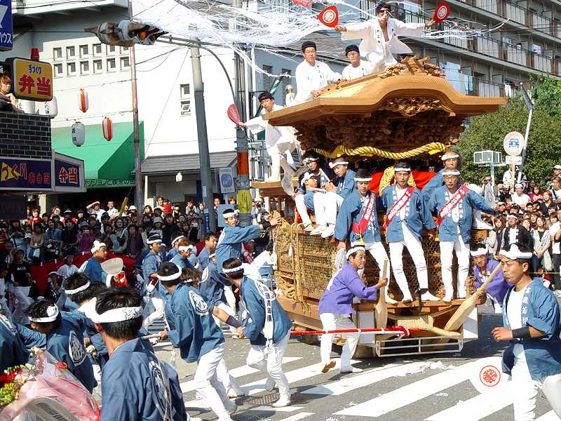 平成14年の高石市祭礼から、とりあえず10月13日の連合セレモニー各町の写真を1枚ずつですが紹介します。 追加の写真もUPしたいと思います。 今年の祭礼は、2日間暑いくらいの好いお天気に恵まれました。