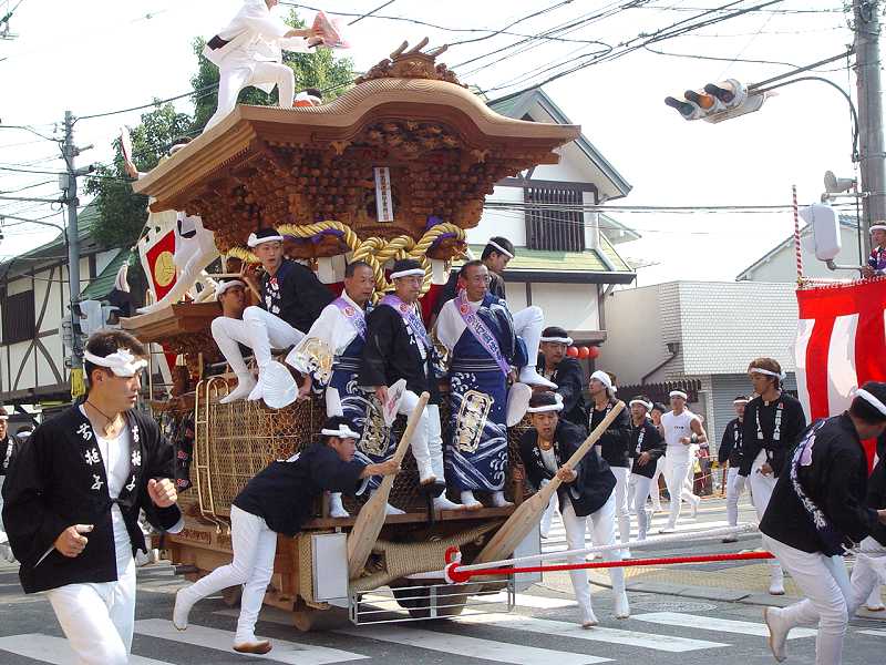 高石の上だんじり3台 前から綾井、高師浜、新家 |