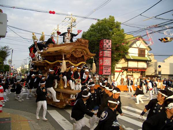 南海中央線にて取石地車連合会(等乃伎神社地区)のフィナーレ 左から綾井、新家、大園 |