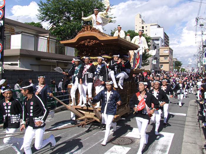 連合セレモニー参加のため、南海中央線に集まった各町 |