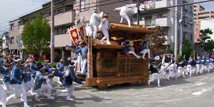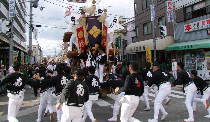 南海中央線はだんじりの休憩場所になっているので、多くのだんじりが見られます |