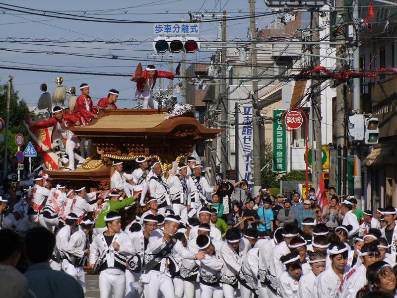 平成25年10月13日、高石市の祭礼です。 連合セレモニーが終わり、しばらくたって人が少なくなってきたので、メインの本部前(ファミマ前)近くに移動して写しました。